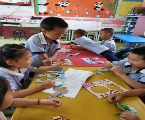 课堂上,小朋友们通过学习古诗《望庐山瀑布》领略了家乡美景,并通过绘画和手工制作等方式,展现了孩子们心中最爱的家乡。队员们还向小朋友讲述了海会社区抗美援朝老英雄马文海和抗疫期间社区防控工作中诸多感人的故事,让他们明白了家乡的和平与安宁是许多人用生命和奋斗换来的。