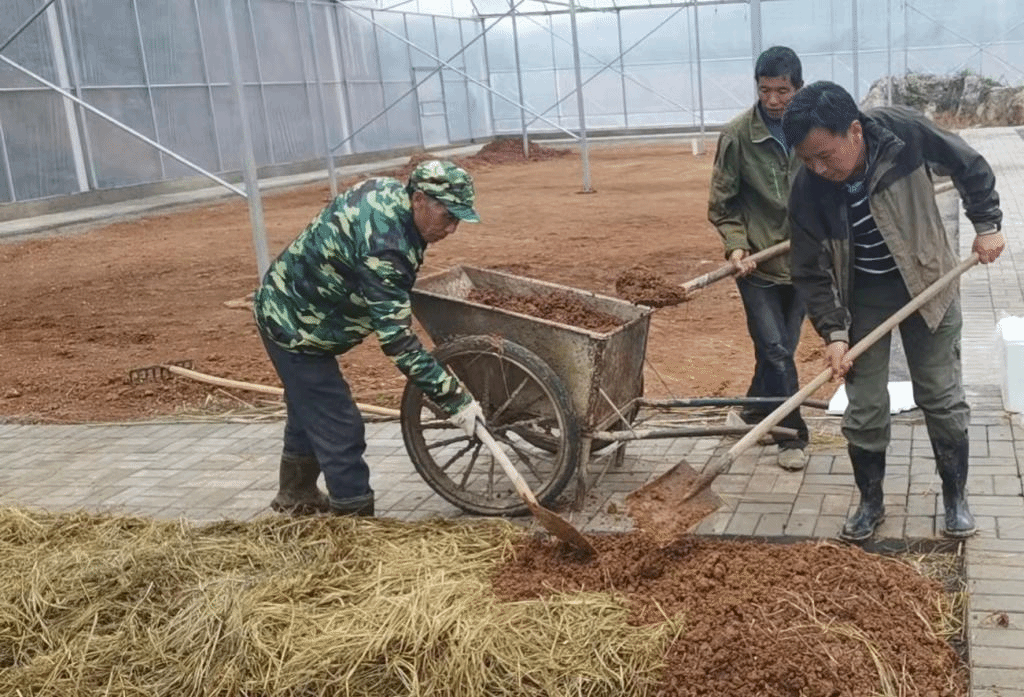 在武宁县鲁溪镇双新村食用菌栽培大棚,为抢抓有利天气,实施好大球盖菇种植工作,11月6日,药生学院陈晔教授亲身示范,为农户传授秋冬季大球盖菇种植技术。
