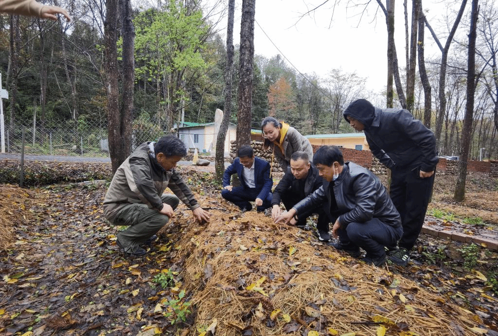 在武宁县罗坪镇长水村,11月7日,药生学院组织博士团队围绕三叶木通种植、林下食用菌栽培进行现场技术指导。团队李同建博士根据长水村自然条件,为科学种植三叶木通提出了具体建议。