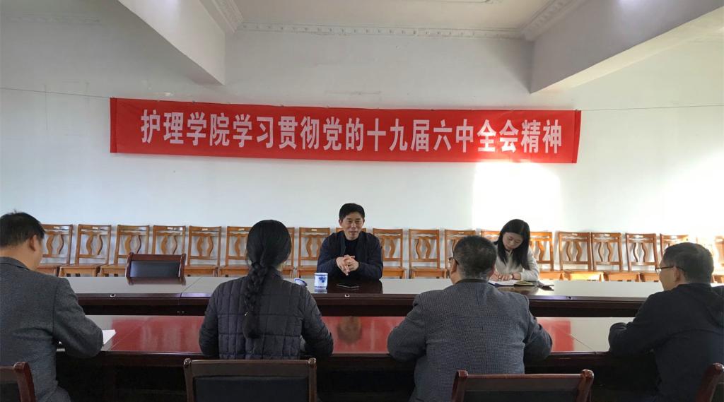 李广欣充分肯定了护理学院新班子的工作,同时对学习贯彻落实党的十九届六中全会精神和下阶段的重点工作进行了指导。他指出,护理学院要始终坚持政治引领,维护学校大局,在学习宣传贯彻党的十九届六中全会精神上走在前列;要凸显百年护理特色,扬长避短,寻求突破;要抓住健康中国战略和整体搬迁新校区的机遇,乘势而上。