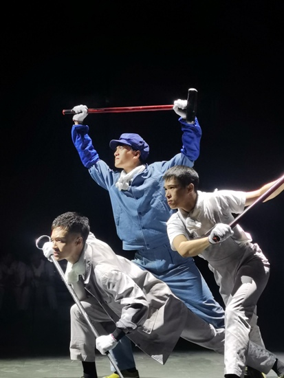 我校原创作品《奋斗》以男子群舞的形式讲述了70年代炼钢工人把自己的一生奉献给了我国炼钢事业的动人故事。舞蹈教研室主任张栗娜、排练教师战飞、领舞孙公伟老师带领22名男生用精湛舞蹈技艺充分展现了当代青年的劳动精神。演出结束后受到业内专家、广大观众的高度评价。这是九江学院第一次以男子群舞的形式参加全省专业舞蹈展演,师生们的专业表现充分体现了九江学院舞蹈专业人才培养的高质量发展趋势。