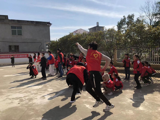 在校园里,志愿者与孩子们进行了亲切的问候与交流,陪孩子们进行了接力游戏,每个人脸上都洋溢着欢乐。