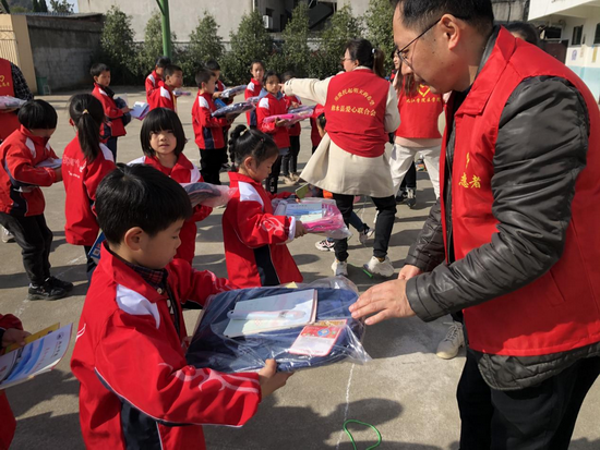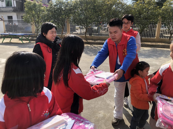 志愿者们为小朋友发放了爱心物资,书包、书本、跳绳……每件爱心物品既是心与心之间爱的传递,也是每一名党员志愿者对山区小朋友们的关爱。“希望孩子们好好读书,树立伟大理想,长大以后报效祖国,回报社会。”医学院院长车向新表示。