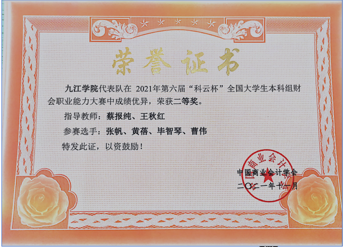 管理学院代表队在2021年第六届“科云杯”全国大学生本科组财会职业能力大赛中战绩丰厚