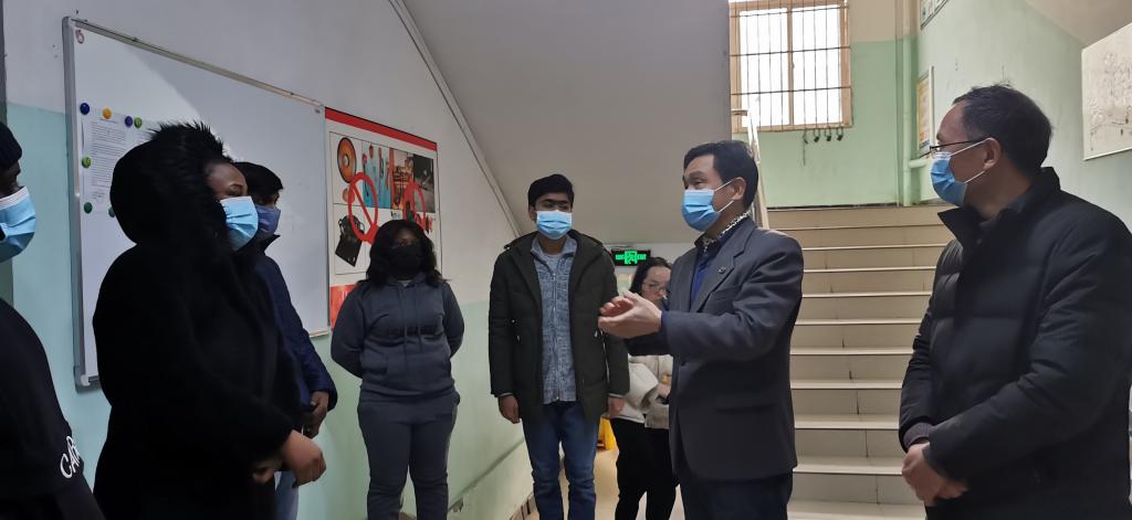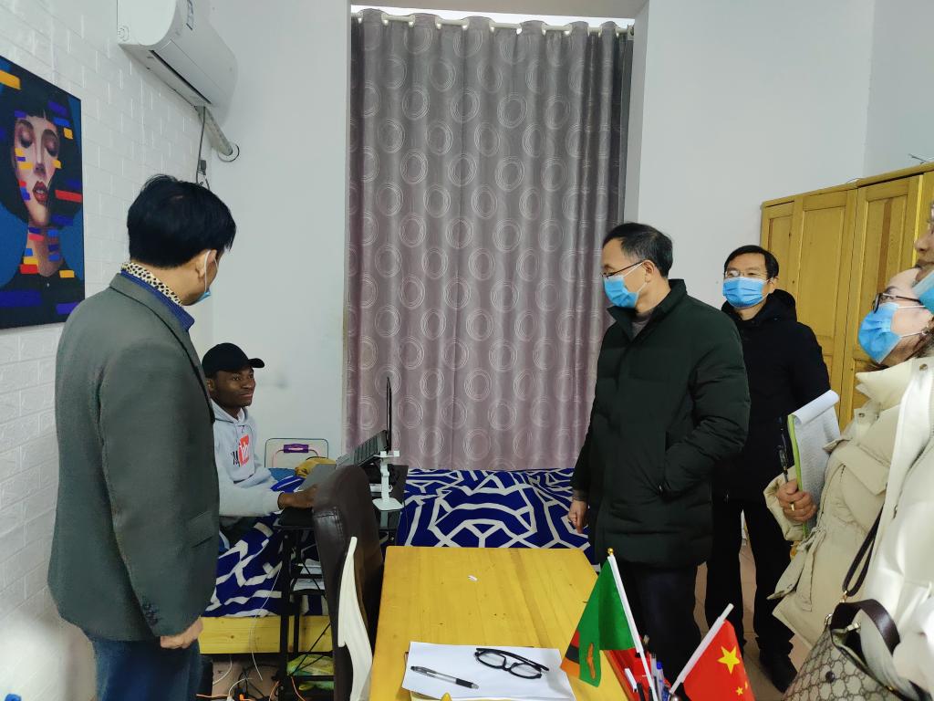 1月13日下午,副校长杨耀防在国际交流学院负责人等陪同下,到留学生宿舍看望了在校的留学生,了解了寒假期间留学生的生活和学习状况,并指导国际交流学院做好在校留学生的安全管理和疫情防控等工作。