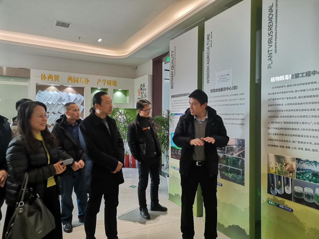 交流会后,各位专家学者还考察了园区的抗炎抗病毒植物、猕猴桃良种、异型番茄品种等项目培育基地、数智化植物培育温室、科研中心等研究场所。