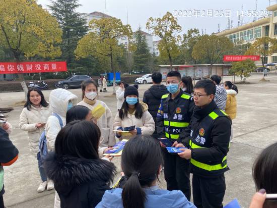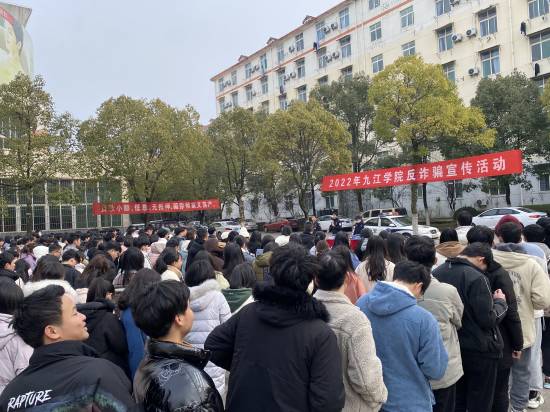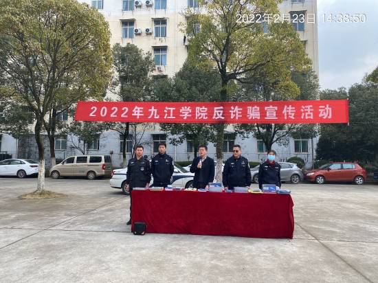 新学期伊始,为加强校园反诈普法宣传教育,提高我校广大师生的防诈骗“免疫力”,2月23日下午,我校保卫处联合九江市公安局反诈中心、濂溪区公安分局反诈中心及濂溪区志警在三食堂广场开展了2022年九江学院反诈骗宣传活动。