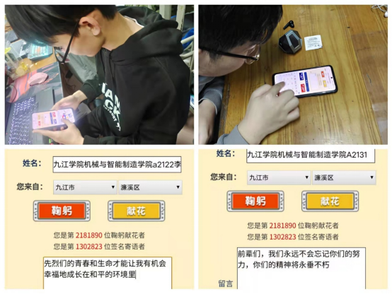 机械学院团委利用中华英烈网,组织青年团员500余人次进行网上“云祭奠”,通过线上参观烈士纪念馆,用视频和文字了解英烈事迹,为英烈们鞠躬、献花、留言,在云端向英烈表达追思与敬意。同学们纷纷表示,此次云端祭英烈活动让大家了解了更多英烈的光荣事迹,今天的幸福生活正是无数革命先辈用生命换来的,作为新时代的机械学院的青年团员,要学习和弘扬“红工匠”精神,不断追求学业上的精益求精,为学院、学校和社会的发展贡献自己的绵薄之力。