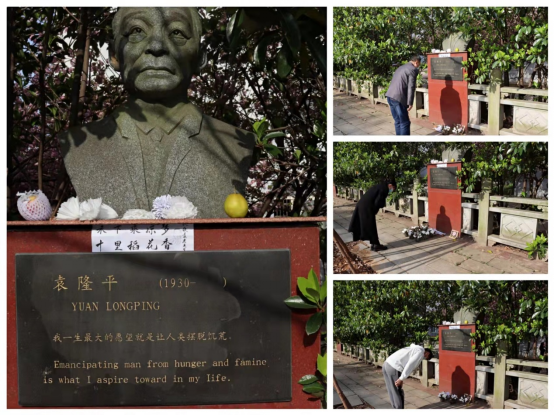 4月4日上午8时,机械学院党委书记舒长兴和辅导员魏秋华带领考研学生来到袁隆平院士雕像前进行悼念。脱帽、鞠躬、献花……全体师生献上自己亲手制作的白色纸花,鞠躬默哀,寄托哀思,在缅怀追思中种下感恩、良善、赓续的种子,让自己的思想得到洗礼,绽放芳华。A1812班刘文谦表示:“袁隆平爷爷是九江学院的名誉教授,他用自己的毕生造福人类。如今斯人已逝,精神永存,袁隆平爷爷的卓越人生就像他热爱的种子一样,深埋在后人心间,令人从中汲取力量,传承使命。” A1812班夏志文说:“此次活动让我收益很多,我们要用实际行动做一粒追梦逐梦的好种子,在新征程中实干有为,勇毅前行。”