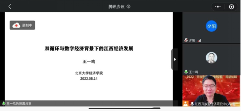 为加快推进江西内陆开放型经济试验区建设,深入推进更高水平开放,着力打造内陆双向开放新高地,探索促进贸易和投资自由化便利化、降低综合物流成本、承接境内外产业集群转移、支持老区与大湾区产业合作、推进科技创新体制机制改革、加强对外文化交流合作,5月14日,经济学院和江西开放型经济研究中心联合举办了“开放型经济创新发展”高端论坛。论坛以“腾讯会议+视频直播”的方式进行。