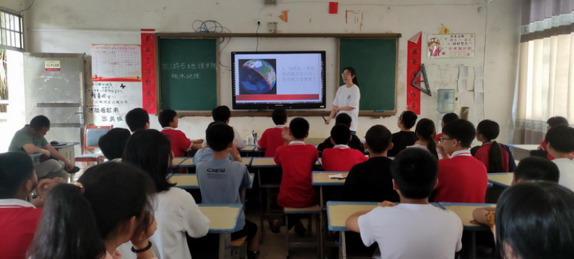 队员吴牵为5年级的孩子们讲了一堂地理启蒙课。她首先播放了一个视频,从国内的一些著名风景出发,用图片的形式对“地理”这个概念进行讲解;随后,她又以孩子们在生活中随处可见的地理现象设置了一些提问,让孩子们回答,回答正确的小朋友就可以获得奖品鼓励;最后,活动以图片的形式向同学们展示一些特色的民居建筑,通过建筑的特点,联系地理的概念,巩固知识。生动的讲解让小朋友们耳目一新。