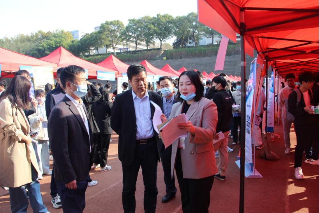 为进一步促进2023届毕业生就业工作,搭建各类企业与毕业生之间对接的平台,11月5日,“九江学院2023届毕业生药学与生命科学学院、化学化工学院、资源环境学院联合专场招聘会”在我校丹枫园校区南区运动场举行。校党委副书记魏立平,副校长王万山、陈春生在招生就业处、药生学院和化工学院、资环学院党政负责人的陪同下到招聘会现场指导。