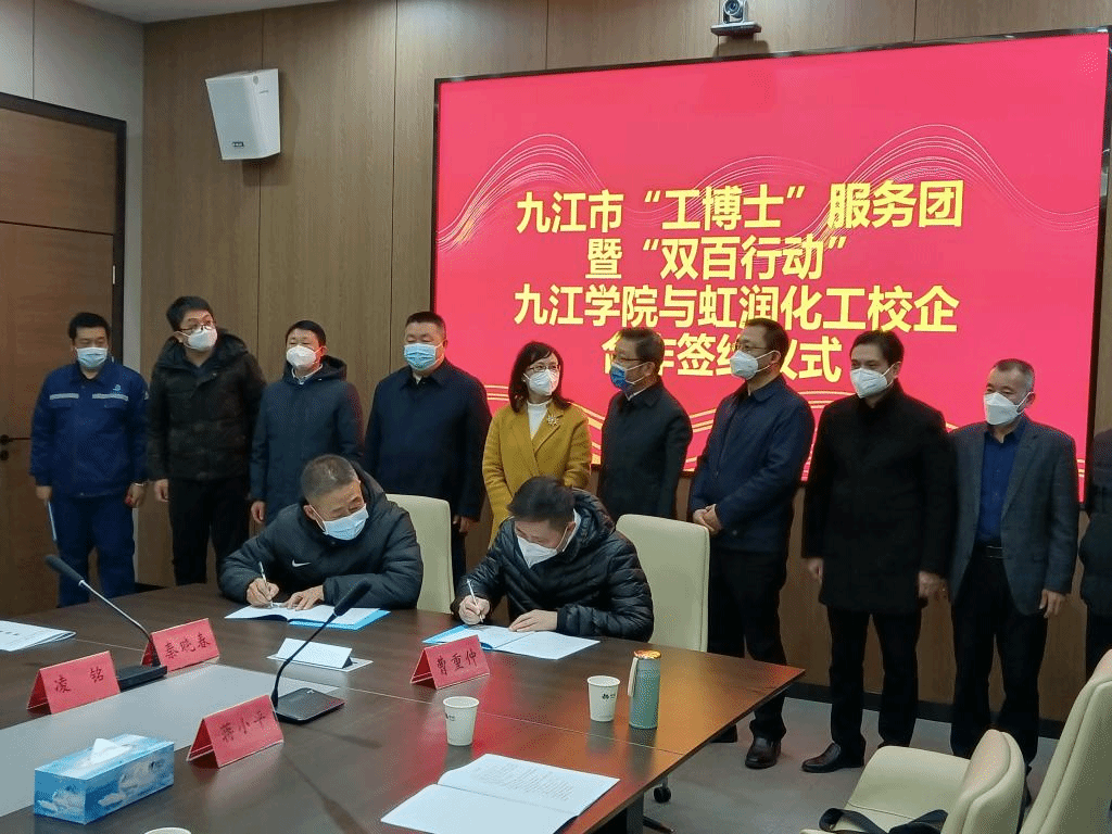 12月16日下午,我校副校长严平带领科研处、化学化工学院负责人及九江市有机硅化学及应用重点实验室教授、博士前往永修县参加九江市“工博士”服务团暨“双百行动”校企合作签约活动。市科协党组书记、主席周光灿,永修县委常委、常务副县长陈冬梅,市工信局三级调研员孙细平,江西虹润化工公司总经理李铁斌,江西海多有机硅公司总经理廖洪流及永修县工信局(科技局)、科协负责人等参加活动。