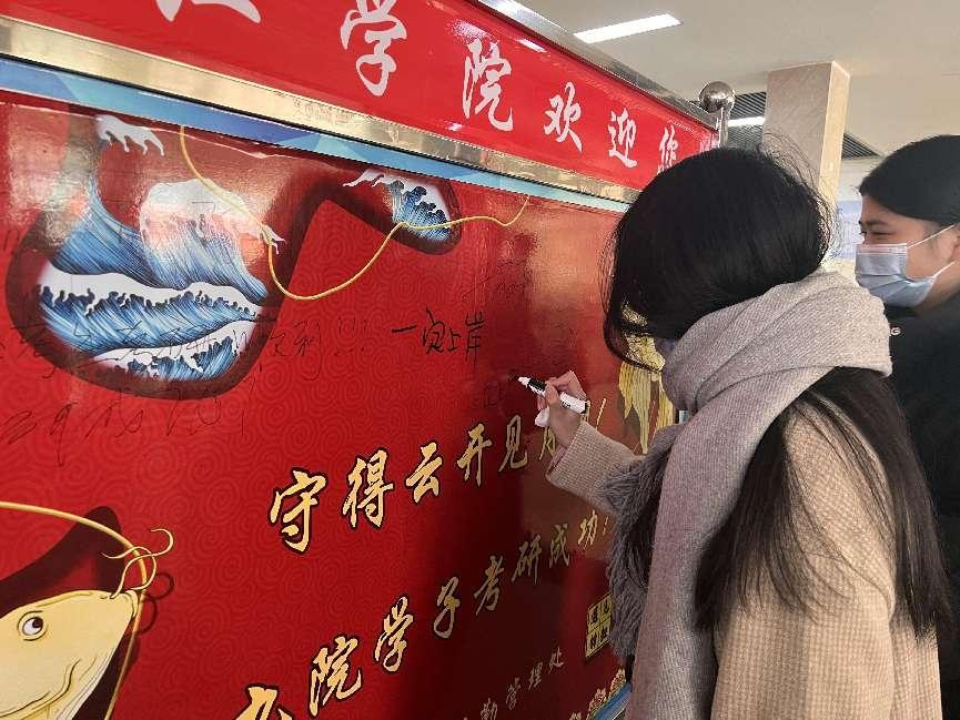 12月23日,后勤管理处在校学生处的协同下为全校留校考研的同学送上“助考爱心袋”近4000份,预祝同学们旗开得胜,马到成功!当日中午,前来学校餐厅用餐的同学积极加入到为自己、为大家加油的签名活动中,大家纷纷写下为自己和同伴们加油祝福的话语。饮食部还为每一位签名的同学赠送了一份精美定制的小礼物(定制竹书签、定制木笔)。