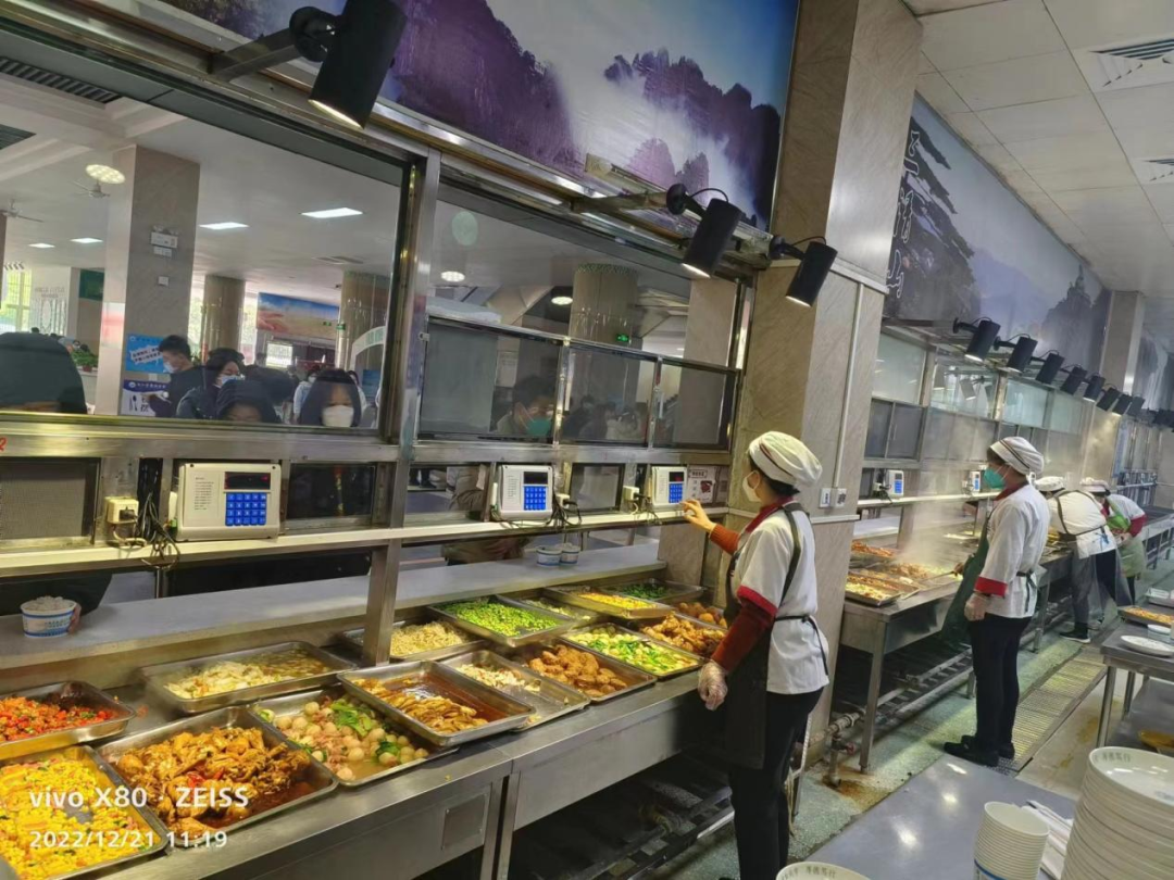 学校后勤管理处工作及服务人员在疫情防控形式严峻的情况下,积极应对做好防疫防控,坚守服务岗位。饮食部为保障考研同学就餐,要求各部门进一步加强前台饭菜保温,增加值班和巡查班次与环境的消杀。各食堂、餐厅都自行延长营业时间;食堂惠补窗口更是新增加花色品种,精心烹制,助力备战同学能量满满。
