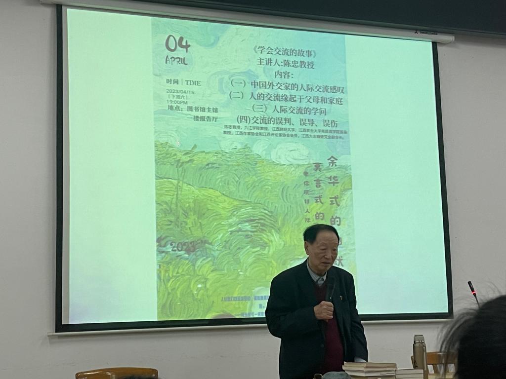 为培养在校大学生的交流沟通意识和团队协作能力,进一步提升学生管理能力、协调能力和创新能力,4月15日晚,在主图书馆报告厅,全国育人楷模、原九江学院文学院陈忠教授为以“学会交流的故事”为题,为我校校院两级学生社团骨干近200余名同学作了专题讲座。