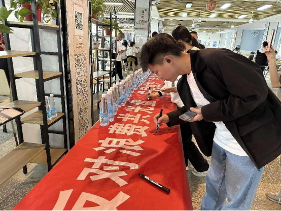 签名活动得到了广大同学的热烈响应与支持。活动现场,同学们纷纷在横幅和签名墙上留言,文学院的张梓文同学说:“作为新时代的五四青年,我们应当从小事做起,文明就餐,反对浪费,为文明有序的就餐环境共同努力!”