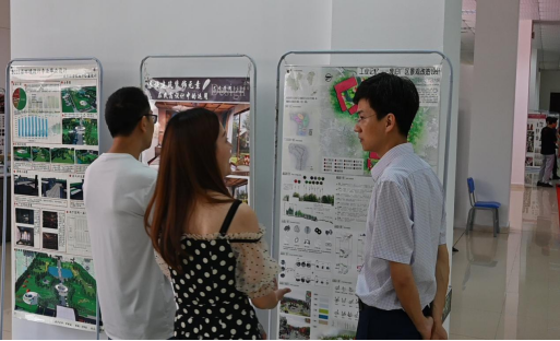 开幕式结束后,嘉宾们与参展师生一道共同观看了展览。