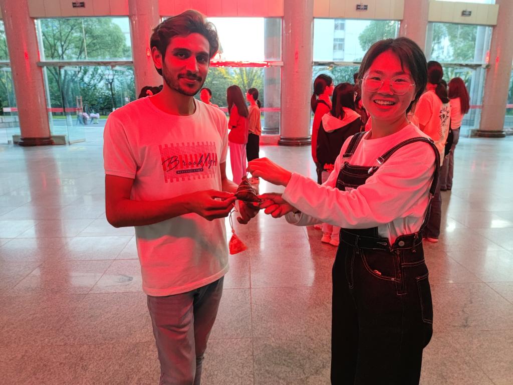 端午临仲夏,时清日复长。6月19日下午,九江学院学生社团邀请留学生们参加了“粽香端午,共话文明”主题端午系列活动,通过包粽子、写书法、诵古诗、戴香囊、编艾草、系彩绳等活动,让留学生们体验中华传统节日习俗,感受中国传统文化魅力,深入了解我国优秀传统文化精髓,体会中华优秀传统文化的博大精深和深刻内涵。