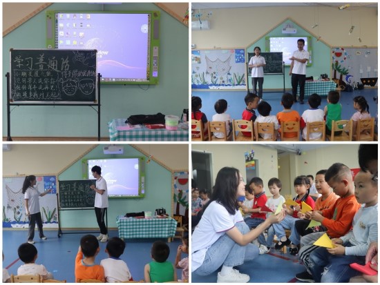 在高垅乡中心幼儿园,实践队员们通过标准的普通话教会小朋友文明用语的使用,“你好”“早上好”“再见”“谢谢”“对不起”,引导幼儿学礼、知礼、懂礼、用礼;活动中,实践团成员穿插小游戏,带领小朋友一起制作纸质蝴蝶,调动小朋友们的积极性与参与度;通过朗诵《山村咏怀》等古诗词普及普通话的使用,并在朗朗上口的古诗词中让小朋友们感受传统文化的魅力。