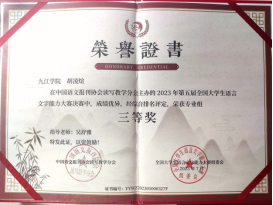 近日,由中国语文报刊协会读写教学分会举办的第五届全国大学生语言文字能力大赛决赛成绩揭晓,我校文学院汉教A2151班由吴舒雅老师指导的6位同学中有4位晋级决赛,郑欣宇同学获得大赛决赛专业组一等奖,杨青霞、胡凌煊同学获决赛专业组三等奖,黄燕同学获决赛专业组优秀奖。