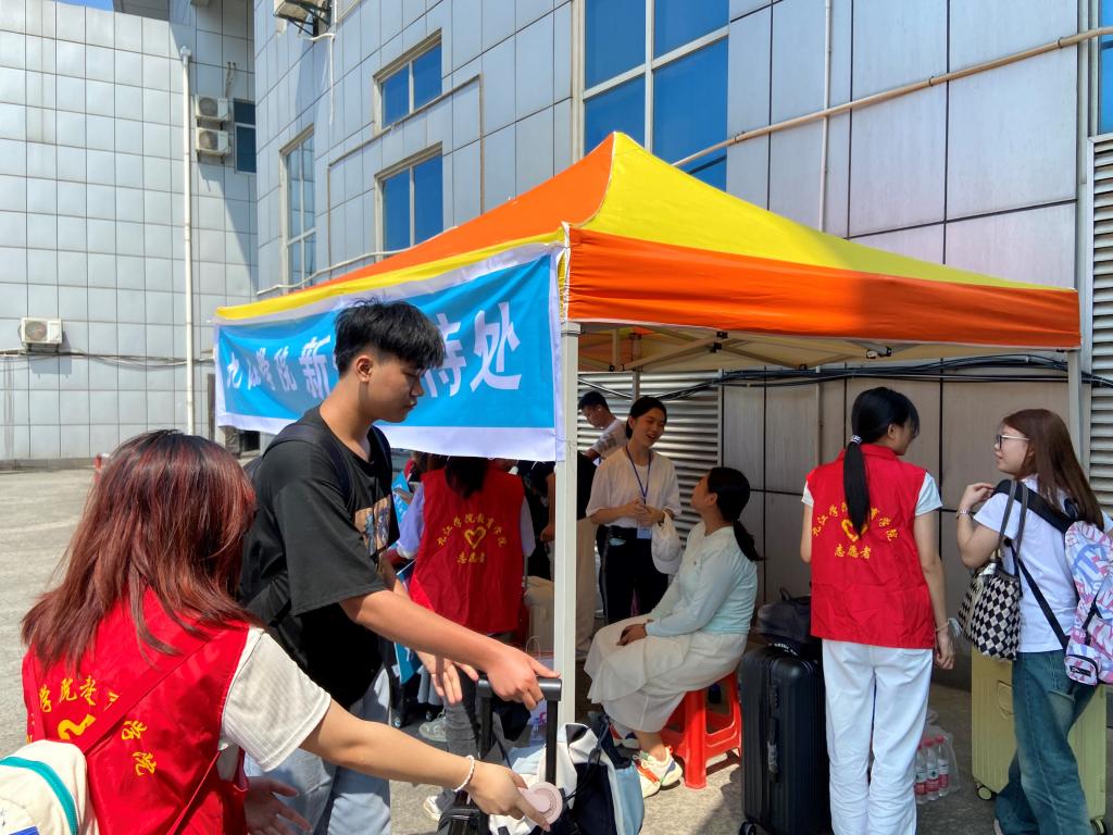 “看着新生和家长们的到来,也让我回想起踏入校门的那天,志愿者们是如何热情地迎接我、帮助我,所以迎新对我来说更是一种传承。作为今年的迎新志愿者,我感到无比的荣幸,我期待着通过迎新让同学们对大学——这个人生新阶段充满信心和向往。”在九江站接新的志愿者周玟同学这样说。