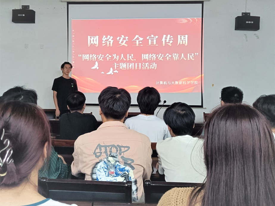 计算机学院通过专题讲座、主题班会、知识竞赛、发放宣传资料等形式,将网络安全教育融入日常管理和思政教育工作体系,通过全过程、全方位、全员参与,引导青年学生树立正确的网络安全观,强化网络安全意识,筑牢网络安全“防火墙”。