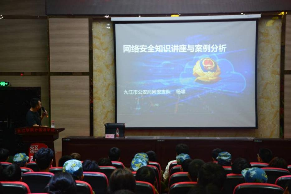 该学院聘任九江市公安局警官为校外辅导员,并定期为同学们开展作网络安全教育宣讲,围绕“网络安全为人民,网络安全靠人民”一系列主题活动,让网络安全知识进教室。让同学们进一步认识到网络安全与个人生活息息相关,坚守法律底线,规范网络行为。开展公益宣传,网络安全进宿舍。学院利用微信、LED电子屏、张贴海报等形式,发挥线上线下多渠道宣传优势,让网络安全知识宣传进宿舍,营造共同构建网络安全防线的浓厚宣传氛围。