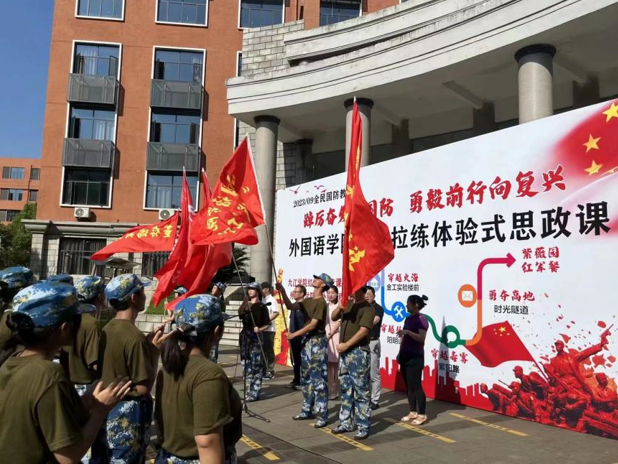 急行拉练六公里增强国防意识、开展四项特色军事科目训练、在红军餐中寻找真味……,9月16日是第23个全民国防教育日,当日,外国语学院举行了“厉奋发强国防 勇毅前行向复兴”军训拉练体验式思政课。