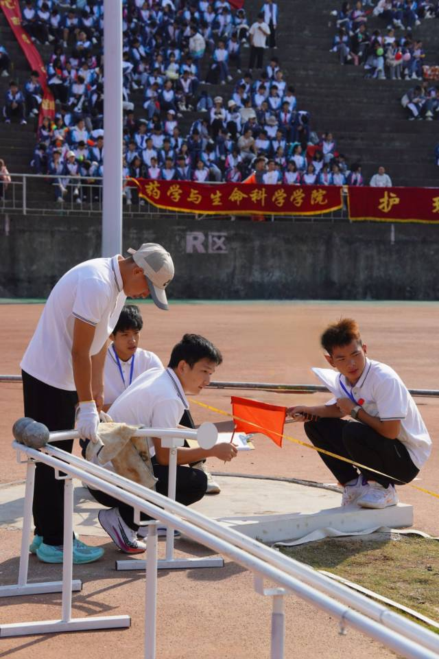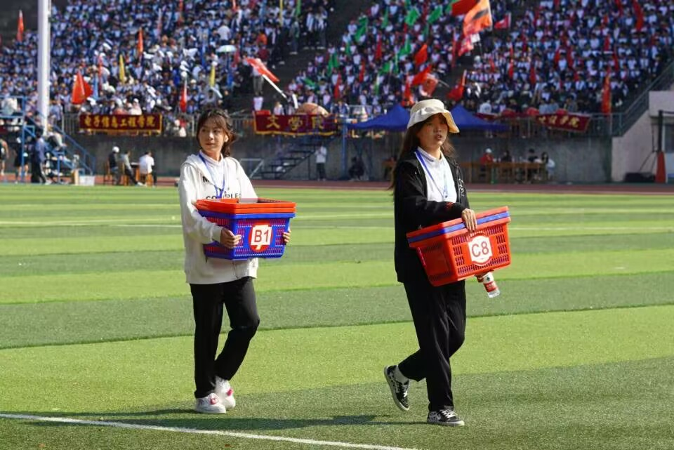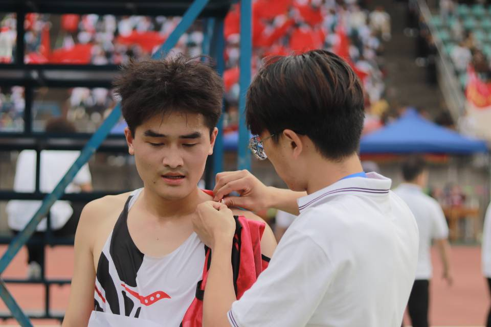 裁判员公正执裁、志愿者无微不至、校医保驾护航、播音员声音作伴……现场欢呼不断,锣鼓喧天,各学院为运动员们鼓劲,加油声此起彼伏。每一个人都在用行动,给运动员传递温暖。