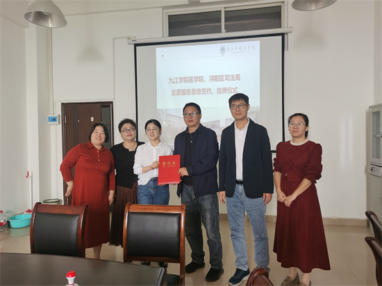 当日上午,医学院与浔阳区司法局进行了志愿服务基地签订,并完成了“青年法治文化教育基地”授牌仪式。同时,双方就志愿服务宣传内容进行交流,并对志愿活动的常态化开展提出相关期望。