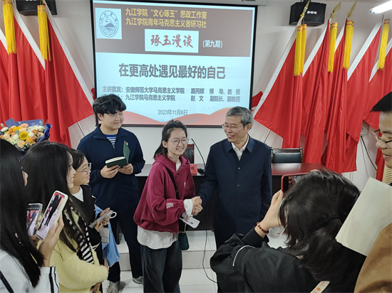 2021年5月,本着“合作共建、相互促进、共谋发展”的原则,九江学院马克思主义学院与全国重点马克思主义学院安徽师范大学马克思主义学院签署合作协议,推动双方在思政课教学改革、集体备课、师资培训、教师进修、育人品牌建设等方面全方位、深层次合作。2021年,九江学院创办“文心琢玉”思政工作室,聘请路丙辉教授担任首席顾问专家。在路丙辉教授的指导下,“文心琢玉”思政工作室创办了“琢玉漫谈”思政育人品牌,本期漫谈也是路丙辉教授的育人品牌“丙辉漫谈”(第366期)走进九江学院,与九江学子“畅聊人生、共话成长”的特别活动。