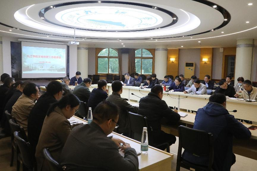 查振华在讲话时指出,要深入学习贯彻习近平总书记关于社会主义精神文明建设的重要论述,统一思想、凝聚共识,认真落实九江市委市政府创建全国文明城市的各项要求。创建全国文明城市工作是文明校园建设的延伸,也是学校服务地方经济社会发展的表现;面对文明创建工作点多面广的形势,全校各单位各部门要明确任务,每位师生要提高文明意识,在日常生活中以规范的言行举止展现出良好的个体素质;各单位、各二级学院要进一步压实责任,紧盯文明交通、环境卫生等薄弱环节,通过支部学习、教研室活动和学生晚点名等形式全方位加强宣传教育。