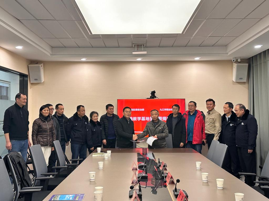 12月14日,法学院与浔阳区政法委/浔阳区综治中心合作协议签约暨法学院实践教学基地揭牌仪式举行。法学院负责人,浔阳区委常委政法委书记胡明海,政法委副书记段华,综治中心主任张政等共同参加仪式。