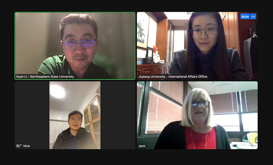 12月13日晚,九江学院国际合作交流处与美国东北州立大学国际项目管理办公室进行了远程线上会议。
