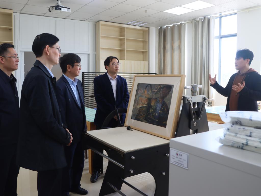 调研组一行先后到我校艺术学院美术馆、版画实验室、虚拟数字媒体实验室、视传文创实验室、非物质文化遗产陈列馆,两南山陈寅恪研究院、陶渊明研究院等进行了实地调研。