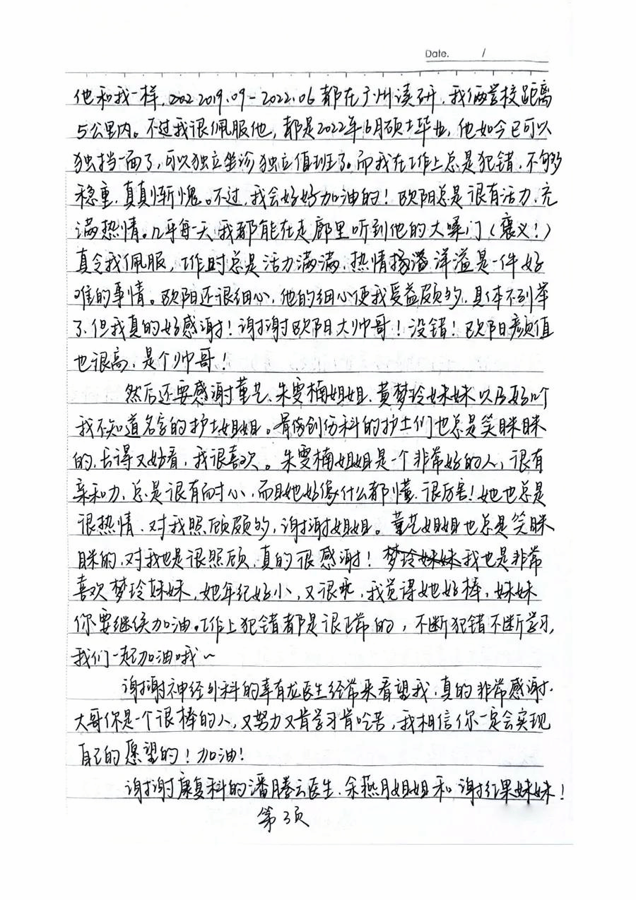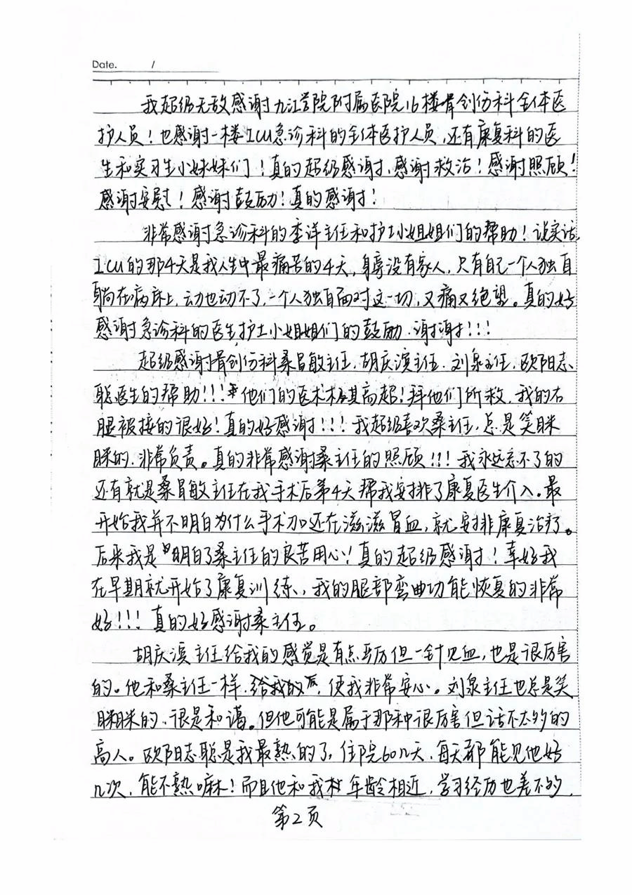 住院期间被暖心照顾!女孩手写2500字感谢信感恩医护,提及多处细节……
