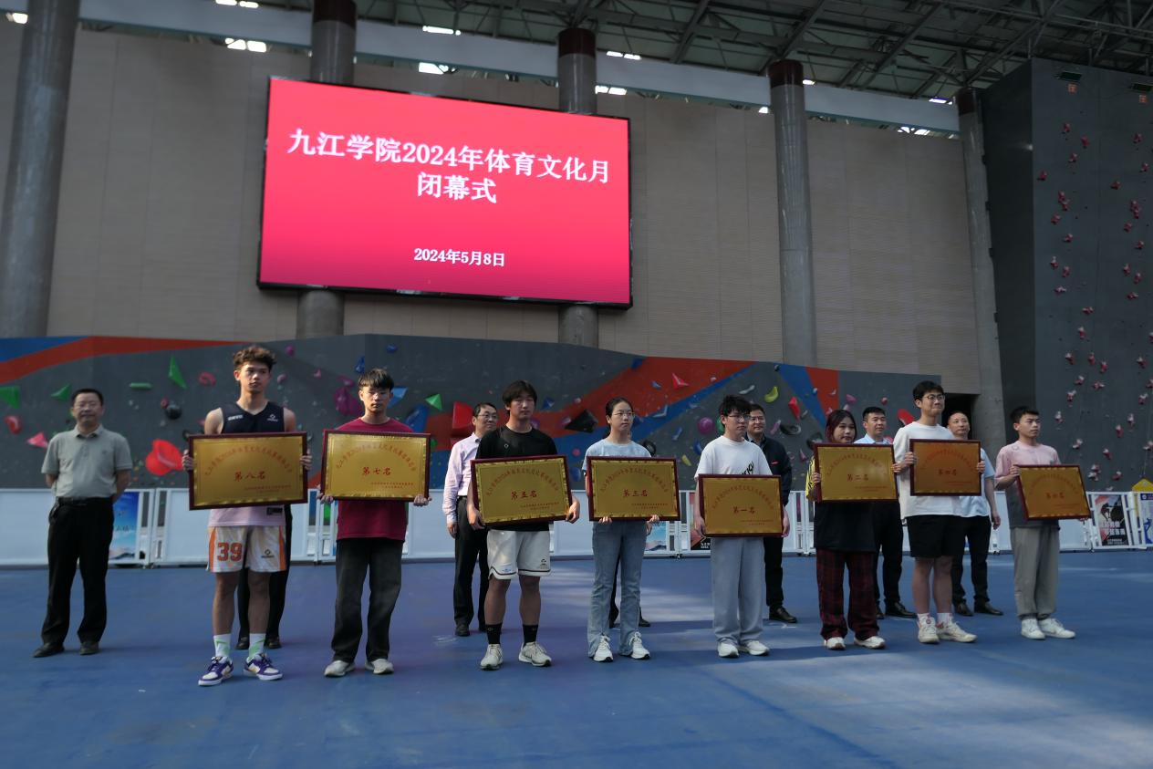 5月8日,在全体裁判员、工作人员以及运动员的共同努力下,由体育学院、校团委、学生处联合主办的九江学院2024年体育文化月活动圆满结束。本次活动以“五育并举、健康先行”为主题,为期40天,累计参与学生达一万余人次,充分展示了九江学院青年学子良好的精神风貌,提升了我校体育文化氛围,有效促进了校园文化建设。
