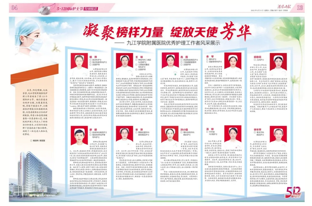 浔阳晚报 |5.12国际护士节 凝聚榜样力量 绽放天使芳华—九江学院附属医院优秀护理工作者风采展示