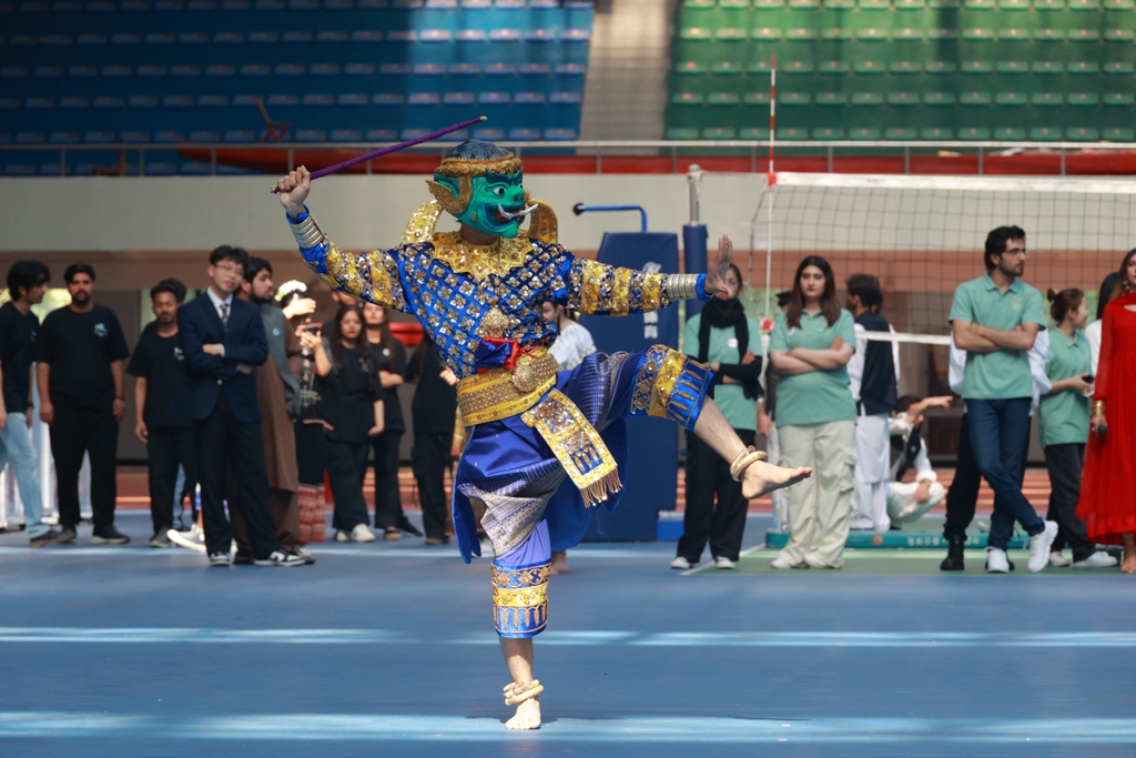 巴基斯坦学生表演的龙狮舞开启了文化节的大幕,各国学生们接连登台,无论是风情万种的泰国“纱丽”舞,还是柬埔寨韵律独特的面具舞、仙女舞,又或是巴基斯坦古典优雅的传统舞都博得现场师生们的阵阵掌声,合唱《友谊地久天长》更是歌声悠悠传向远方。
