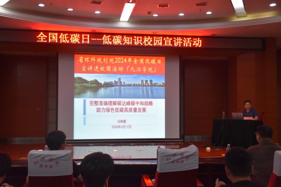 5月13日-19日是全国节能宣传周,为深入宣传贯彻习近平生态文明思想,更好落实《江西省发展改革委江西省生态环境厅关于开展江西省2024年全国节能宣传周和全国低碳日活动的通知》的精神,九江学院、九江市生态环境局、九江市濂溪区生态环境局共同主办了此次活动。活动旨在深入宣传低碳发展理念,普及应对气候变化知识,提升大学生低碳意识。讲座把绿色低碳高质量发展理念、最新进展、成果、需求和实践融入整个活动环节,有效推动了资源环境学院“弘‘两山’理念,育环保英才”党建品牌工作与学生思政工作的深度融合,推动了青年大学生的成长与成才。