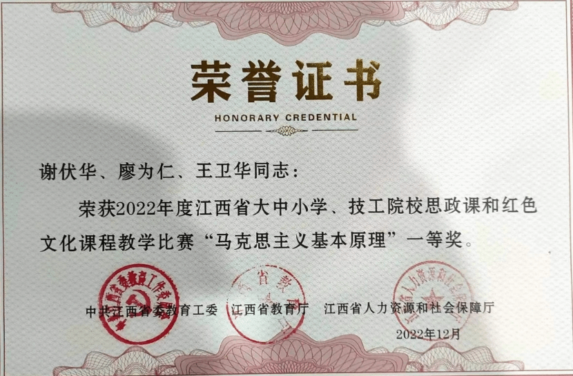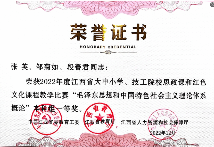 2022年,在全省高校思政课教师教学比赛中荣获一等奖2项