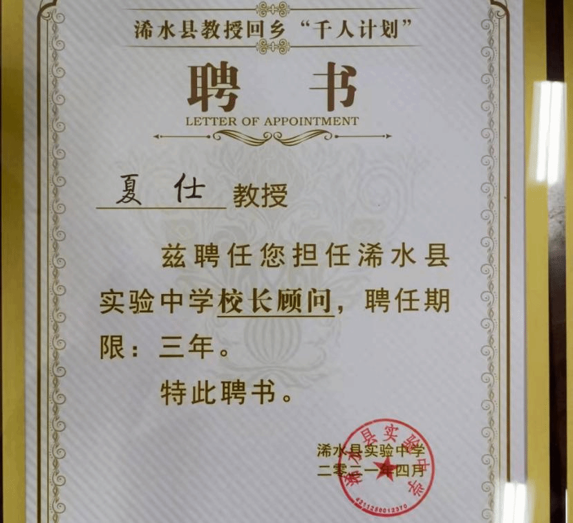 夏仕教授被浠水县实验中学聘为“校长顾问”