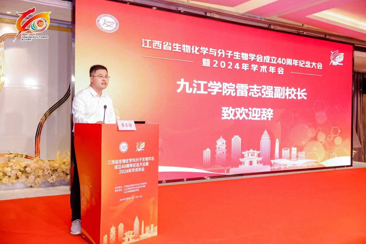 在7月6日举行的学会成立40周年纪念大会开幕式上,雷志强代表九江学院致辞,对大会的顺利召开表示祝贺。他表示,大会的召开,对于拓宽学术视野、启迪研究灵感、增进教学技能具有重要意义,定能为今后生物化学与分子生物学领域的科研和教学工作注入新的动力。