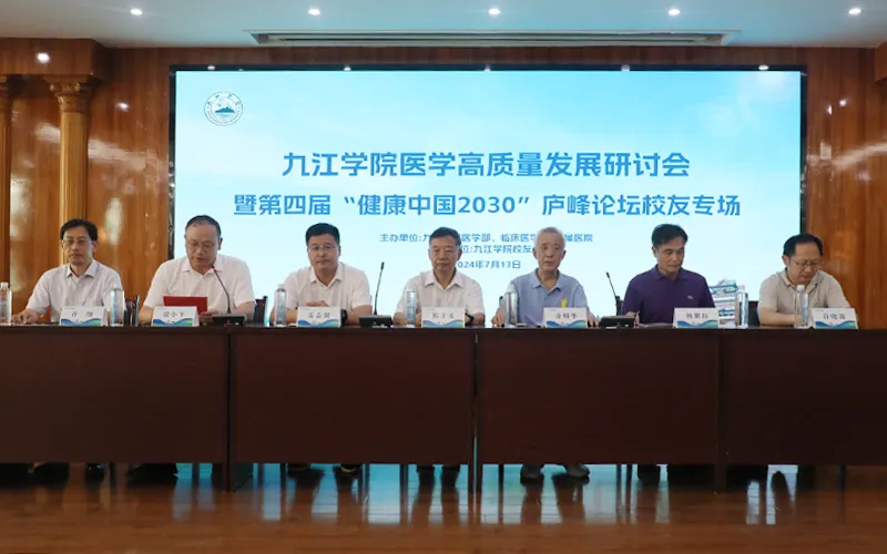 为深入探讨医学教育的高质量发展路径和创新方向,并加强校友与母校之间的联系,7月13日,九江学院医学高质量发展研讨会暨第四届“健康中国2030”庐峰论坛校友专场活动在附属医院顺利举办。党委委员、副校长雷志强,学校原党委副书记熊才水,原副校长涂明华、杨耀防,医学部、附属医院、基础医学院、药生学院负责人及全国各地优秀校友代表参加会议。