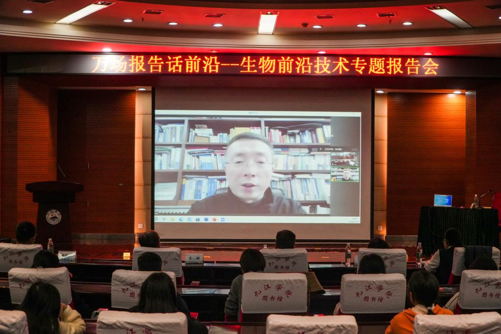 张宏翔秘书长通过视频致辞,代表中国生物工程学会对九江学院专场报告会的举办表示祝贺,向一直以来支持和关心中国生物工程学会工作的九江学院师生表示感谢。他表示,希望通过本次活动,促进本领域学术交流,提升青年科技工作者的创新精神,促进生命科学与生物技术领域创新型人才培养。