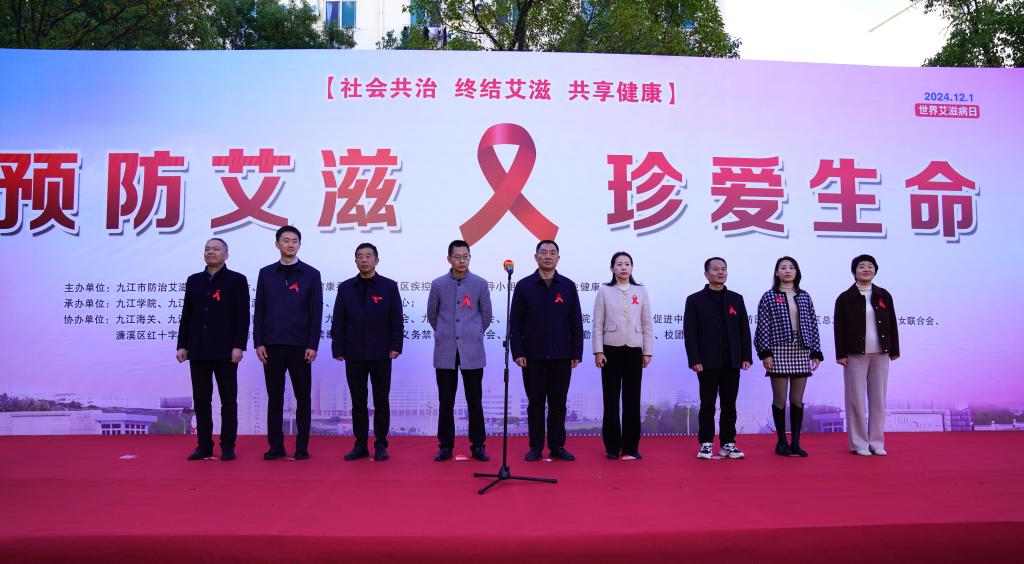 在第37个“世界艾滋病日”来临之际,11月29日上午,九江市“世界艾滋病日”大型主题宣传活动在我校举行。校党委委员、组织部部长杨杰,市卫健委党委委员、副主任,市疾控局局长王文军,校团委负责人等出席活动。
