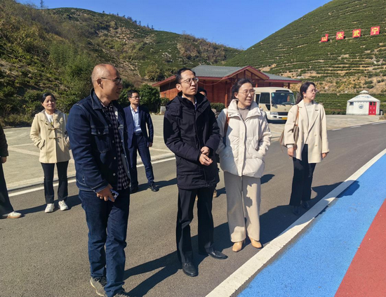 王殿元带领调研组在郑熊星及我校驻村工作队的陪同下,来到双新村英山茶博园、垂钓基地、蔬菜种植采摘园进行实地考察和调研。