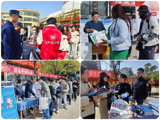 仪式上,濂溪区公安分局反诈中队、十里派出所负责人分别结合工作实际,为师生带来专业的安全知识指导。外国语学院李霂岩同学作为平安江西志愿者代表发言。在宣传展板区,一块块精心制作的展板图文并茂,直观展示了学校在平安校园建设中的创新举措和丰硕成果。师生们驻足各宣传台前,认真聆听消防安全、交通安全、食品安全、实验室安全等专题宣讲,在互动体验中增强安全防范意识。