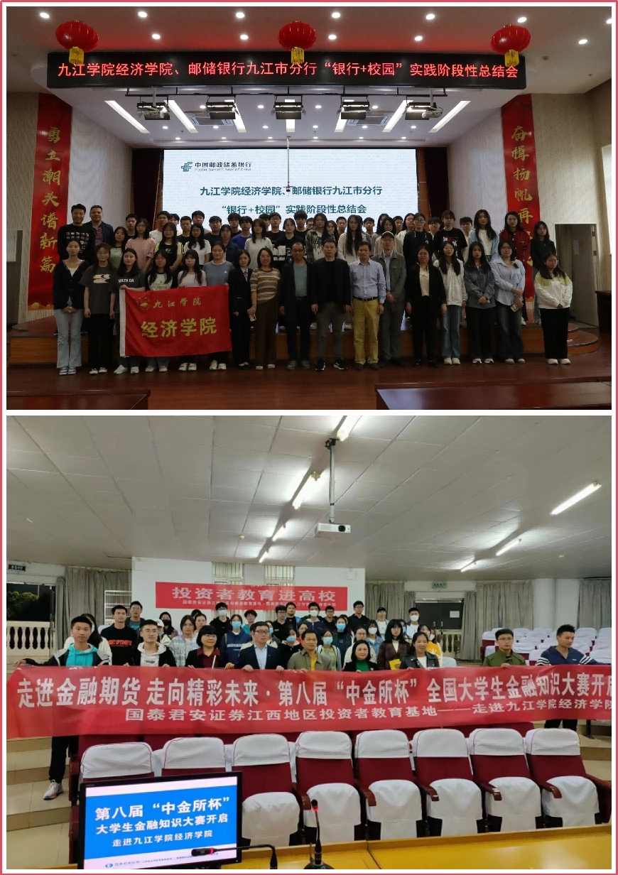 文化育人,厚植经院精神。学院注重文化育人,推动校园体育、艺术、社会实践等活动蓬勃发展。学生团队多次获评九江市“三下乡”社会实践优秀服务队,学校“五四红旗团委”等荣誉称号;在校级运动会、体育文化月等赛事中屡创佳绩;在十佳歌手大赛、舞蹈大赛、中华经典诵读大赛等活动中充分展现青春风采,营造昂扬向上的校园文化氛围。